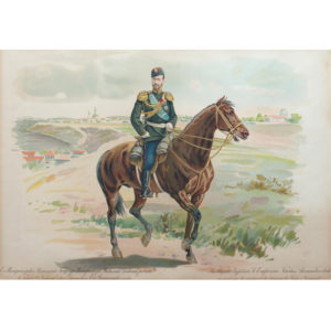 Portret konny cara Mikołaja II w mundurze polowym dragonów