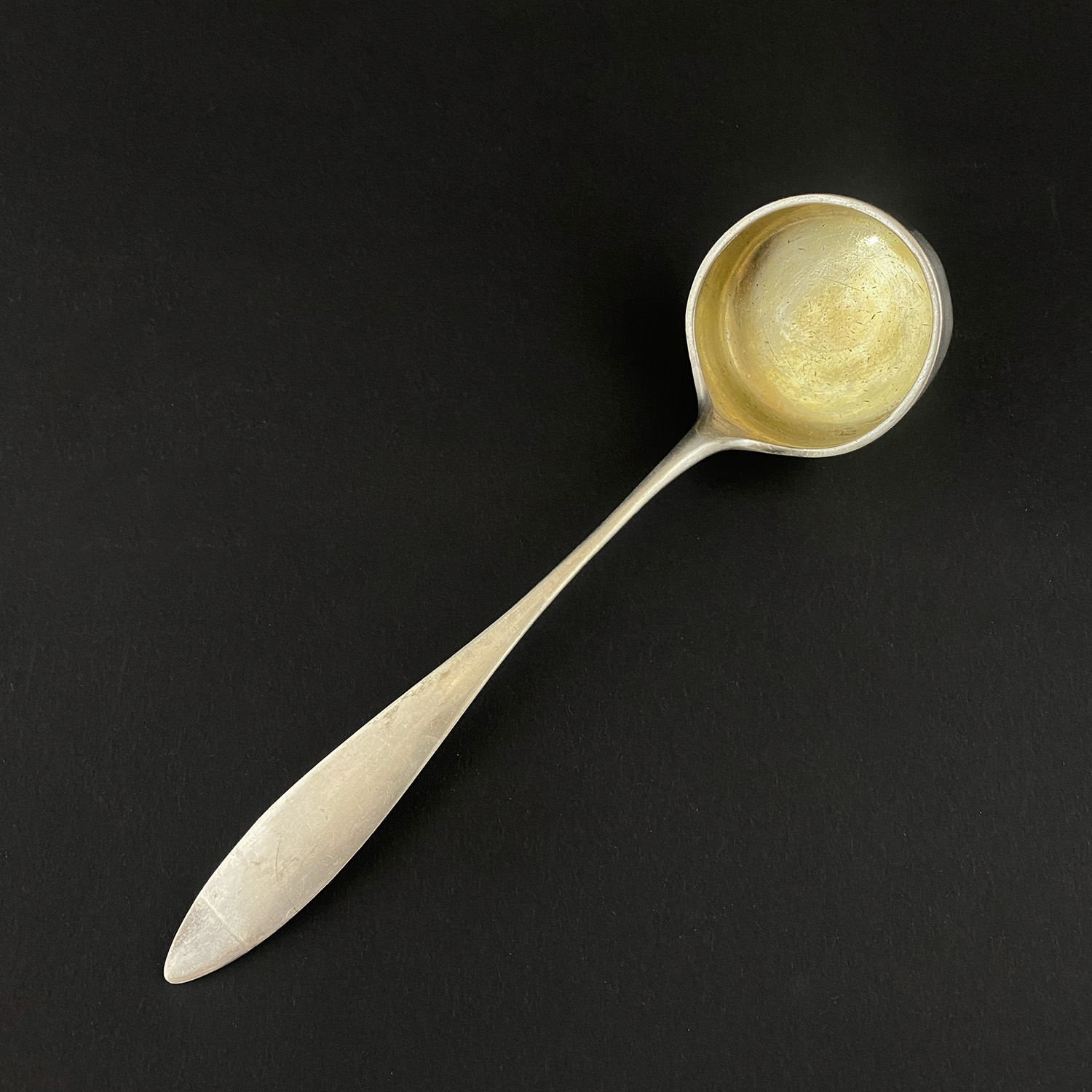 Wnętrze czerpaka złocone ; zarysowania powierzchni.