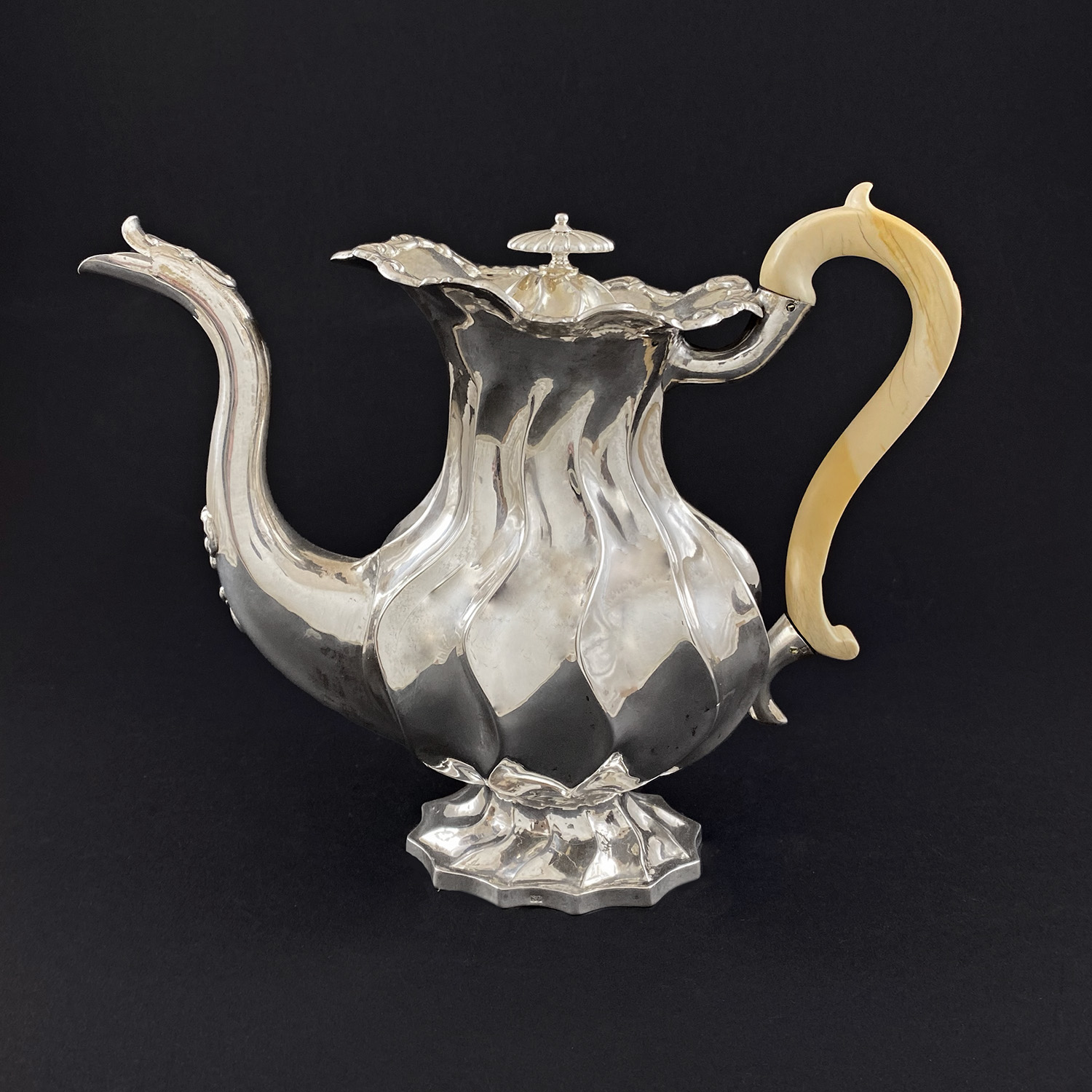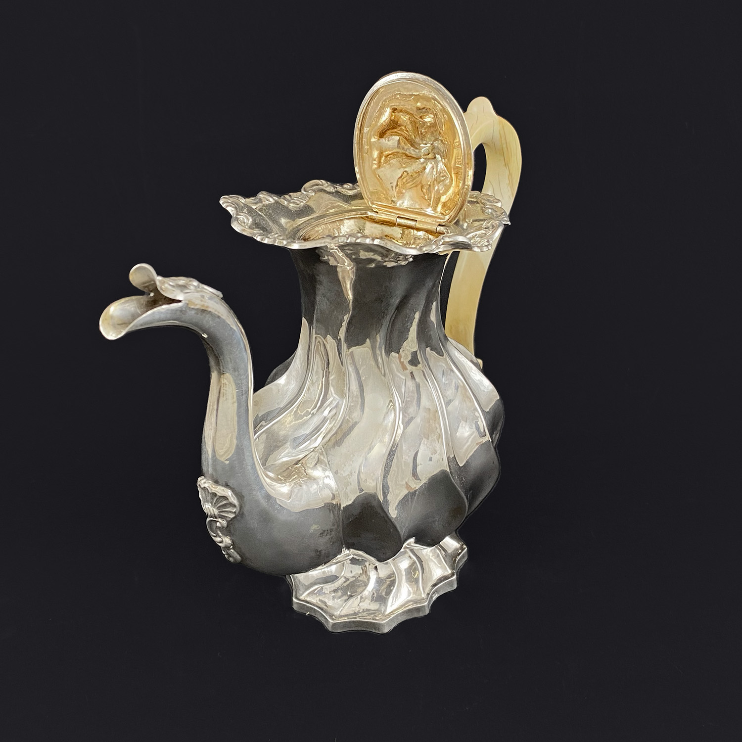 Srebro pr. 84, cechowane na spodzie: znak probierza z 1843 (nieznany: za Postnikova-Loseva), znak złotnika zatarty, cecha miejska, cechowanie dodatkowe lombardowe, cecha warszawskiego Urzędu Probierczego z okresu międzywojennego (oznaczenie srebra 2)